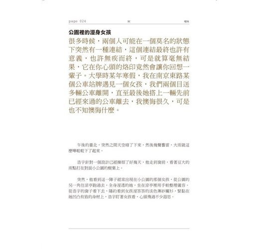 創作的習慣,甚至及於從紐約拍照片時,養成的對於百般聊賴人生風景的偏愛,於感情來講,也許就是「無為無不為」的態度,於是我只要逮到機會,免不了都要偷灑一些這樣的種籽。