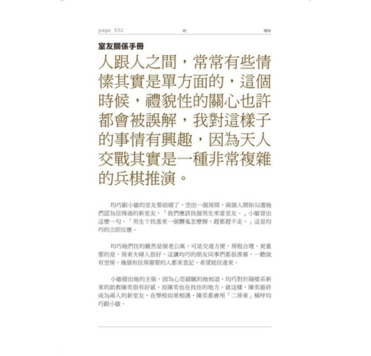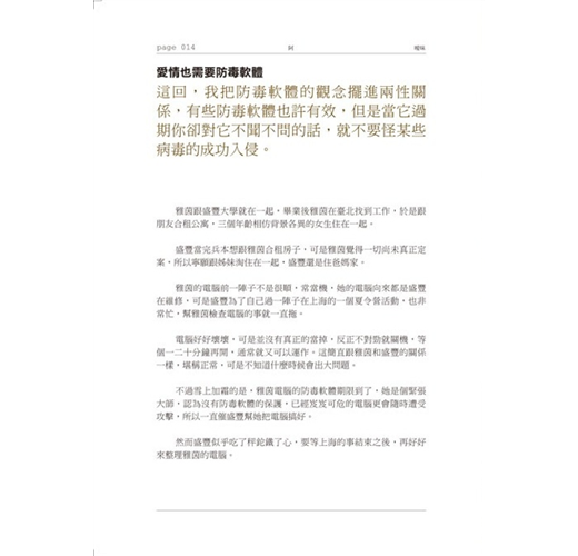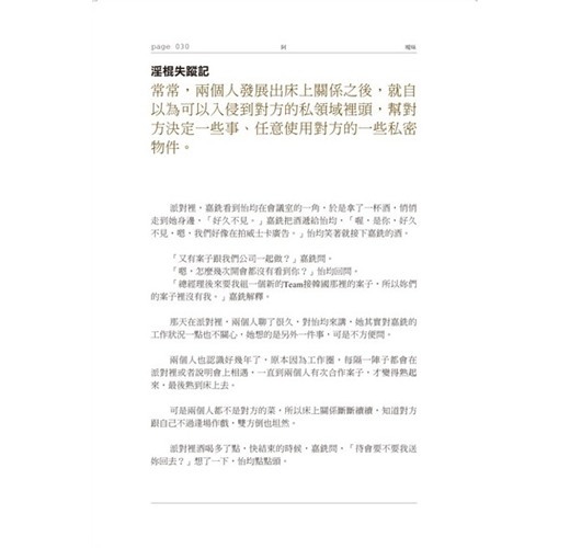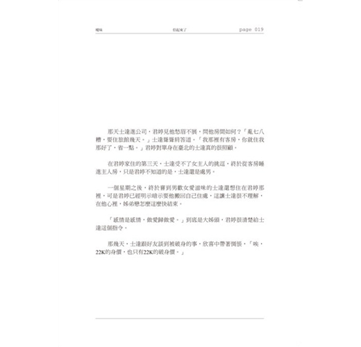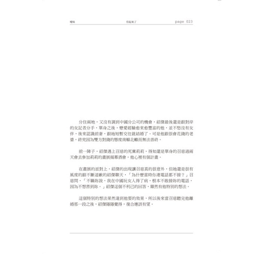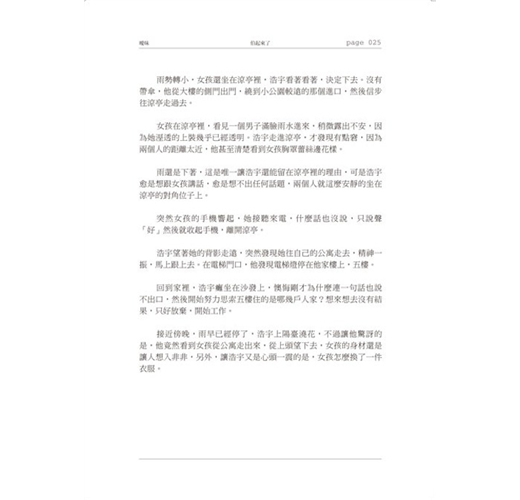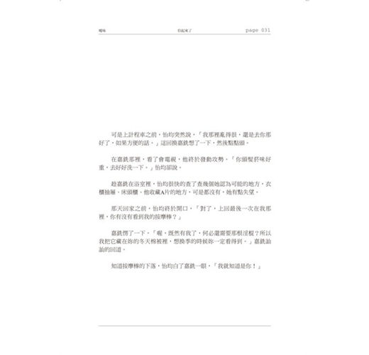 「嗯,音樂很吵是吧?我的style,」翊君笑道,「這位是我大學同學小浩,剛從英國留學回來,帶他來見識一下台北的夜生活,這位就是董平,大記者先生。」翊君簡單為雙方介紹了一下。