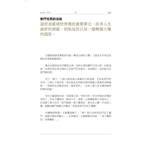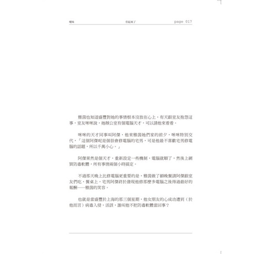 「我的這個老友是同志,他在英國待了近十年,所以比較直接一點,如果讓你不舒服,我向你道歉。」翊君面無表情地說著,「我記得你第一次約我,我也毫無興趣,可是我並沒有拍桌罵人給你難堪,是吧?今天就到此為止吧。」