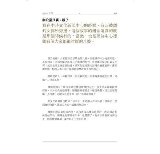 「喝咖啡?」元聚面試的第一句話只有這三個字,「喝。」曦婷的回答更精簡。