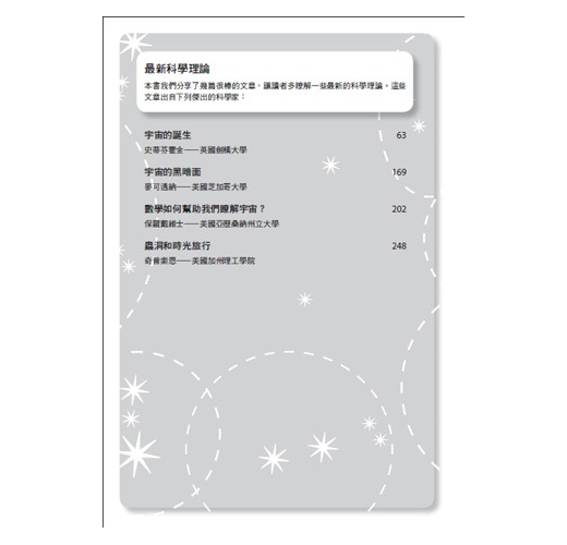本書我們分享了幾篇很棒的文章,讓讀者多瞭解一些最新的科學理論。這些文章出自下列傑出的科學家: