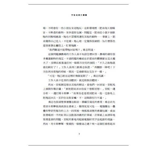 「意思就是,不管是在哪裡,萬物都是以相同的方式形成的,」喬志想起艾瑞克的演講,「相同的材料、相同的規則,然而,因為時間形成的初期造成的微小變動,導致萬物之間產生了些許的差異。」
