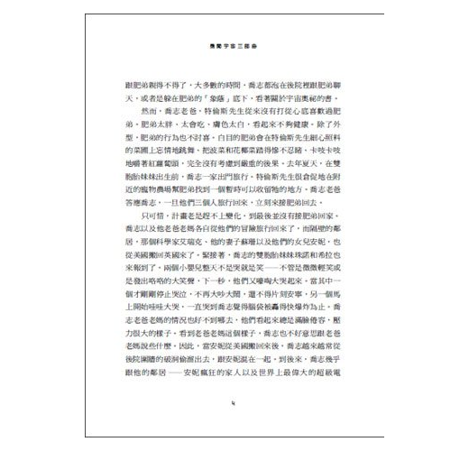 「星星看起來是一樣的……」喬志一個字一個字地說出口。「這顆小行星跟平常的小行星並沒有兩樣。我猜,我們一定是繞著一顆星球的軌道在運轉,所以,我們是在另一個太陽系裡。在銀河裡並沒有多大的差別。」
