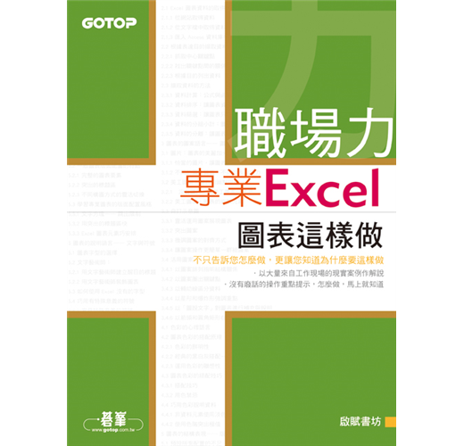 書中以大量精彩案例的分析,總結出了一套簡單實用,行之有效的方法,讓一般人只要透過Excel軟體,就能製作出外觀精美的雜誌級專業圖表。另外,本書採用效果解說與主要步驟講解相結合,將案例的關鍵內容明確地提出來,讓讀者瞭解案例效果的來源。真正達到學習、提升的目的。