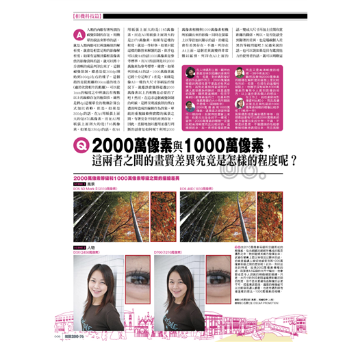 Q.006 2000萬像素與1000萬像素,這兩者之間的畫質差異究竟是怎樣的程度呢?