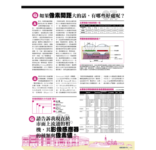 Q.008 請告訴我現在於市面上流通的相機,其影像感應器的種類與像素值!