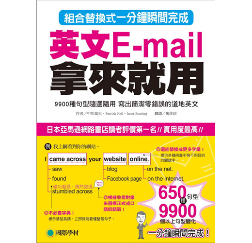 本書提供650個「常用基本句型」以及豐富的「基礎英文單字」,共可排列組合出9900個以上不同的句子。不收錄冗長的長篇大論,以最容易閱讀也最容易上手的方式編排,讓讀者能夠快速找到自己在不同場合所需要用到的各種句型,只要用「選」的,就能為自己量身訂做出一封正確無誤的英文E-mail。