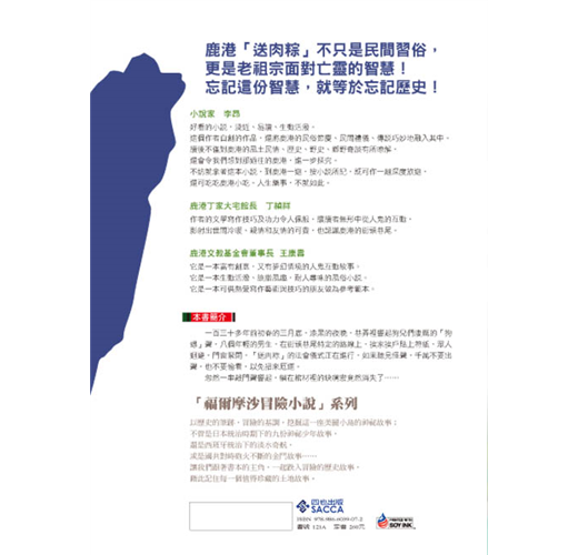 這個作者自創的作品,還將鹿港的民俗節慶、民間禮儀、傳說巧妙地融入其中。