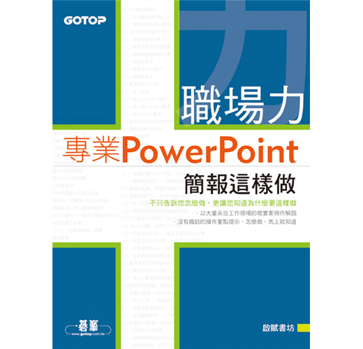 .循序漸進的說明:從簡單的概念開始,逐步引導讀者建立設計的概念,成為一位製作簡報的高手。