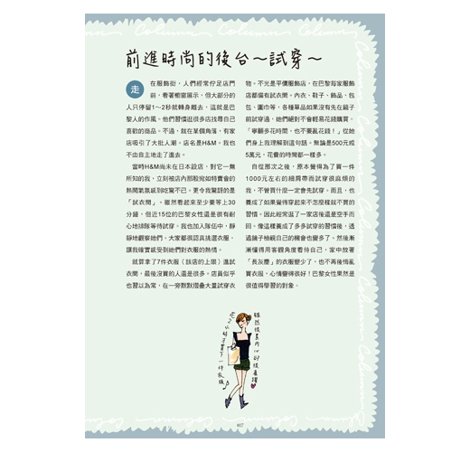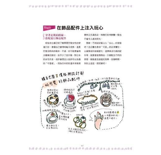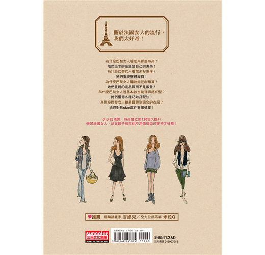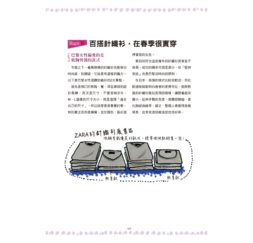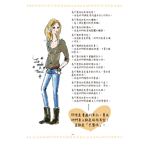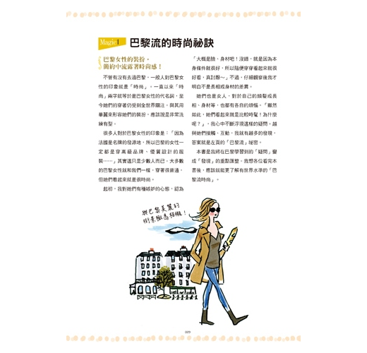 也因此有了許多不同的發現。然後透過本書以完整的圖解方式讓各位了解「看似普通卻很時尚」的巴黎女性穿搭技巧。希望各位看了本書後都能像巴黎女性那樣閃閃發光。