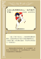 史上第一套 源自日本的貼紙心靈激勵書:最激勵人心的哲人名言,透過精闢獨到的賞析,不但能認識哲人的生活環境,還了解哲人突破困境的方式。幫助你突破生命中的重要關卡,找回自信和鬥志! 讀名言,扭轉困境,開創人生新局面:全書共有116篇,每個篇章先引述深具正向意義的哲人名言,再加入哲言的解讀賞析,讓人閱讀之後,能永遠保持樂觀積極的處事態度,堅持理想,擊退遭遇的難題,站上成功的高峰。超值附贈 數十張精美哲言貼紙:書後更附上精美的貼紙冊,結合日本風行的貼紙心靈療法,搭配超卡哇伊的療癒系娃娃,讓讀者可以隨手貼在書桌前或筆記本裡,隨時成為激勵心靈的力量!