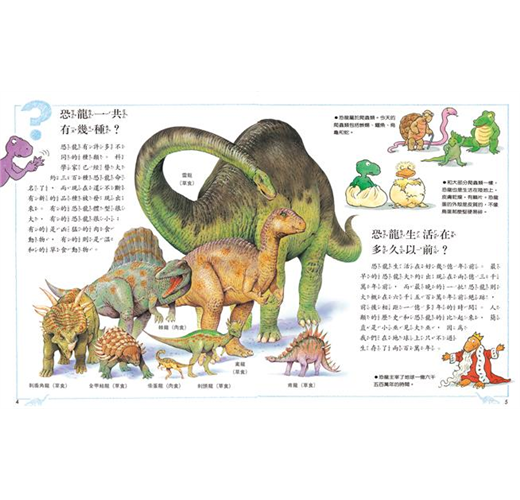 恐龍一共有幾種?暴龍的嘴巴有多大?恐龍之王是哪一種恐龍?為什麼禽龍要豎起牠的大拇指?恐龍為什麼會吃石頭?哪一種恐龍有好幾百顆的牙齒?這個世界還有恐龍嗎? 每一個有趣的問題後面都有十分特別的答案,動態十足的圖片,更是精彩呈現出恐龍動作的瞬間!