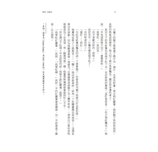 她沒馬上回答。我聽見她喃喃地說:「朵麗絲‧克勒門……朵麗絲‧克勒門……」然後她說:「好。八點十五在布里亞帕斯山莊。」
