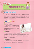 提供各種養生資訊,針對各項疾病如感冒、頭痛、便祕……,以及各類體質人群與春夏秋冬四季的飲食方法,讓您吃對食材,永保健康!