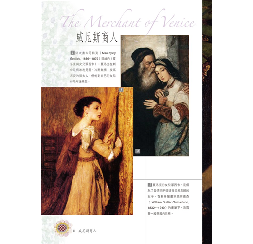 莎士比亞的作品,對後來的戲劇與文學發展帶來深遠的影響,甚至也激發世界各地許多音樂家、藝術家的靈感,創作出偉大的音樂、歌劇或畫作。本書特別蒐羅數十幅相關題材的西洋名畫,供讀者在欣賞優美的畫作之餘,也體會莎士比亞戲劇中深刻而動人的魅力。