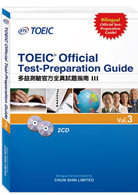 台灣地區自2008年3月開始實施版TOEIC聽力及閱讀測驗以來,已發行兩本新版多益測驗Offical Guide。2011年,為了提供讀者更多豐富的測驗練習內容,乃出版第三本《TOEIC Official Test-Preparation Guide》,採用全新題庫,可供讀者及語言教學機構充分運用。本書包含了兩份TOEIC練習測驗(共400題),內容均照ETS製作的試題標準型態編寫,CD內收錄的聲音亦完全比照正式測驗規格,對於考生而言,是準備考試的有效練習工具。