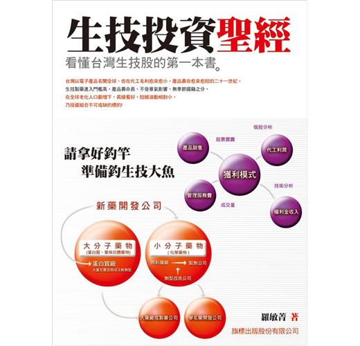 所以本書先將台灣生技相關個股進行分類,分別點出投資評估重點,由簡而深,先了解與生活相關的醫療類股,然後再進入進階篇,介紹大家最不熟悉的原料藥、單株抗體、檢驗試劑、…平常有聽沒有懂,卻又是最有潛力的投資標的。