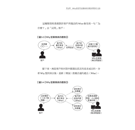 Why型人因為懂得用「為什麼?」反問客戶所提出的第一個問題(What),因此能夠逼近客戶的真正需求(Why)。而這個動作,正是What型思考與Why型思考最大的不同點。