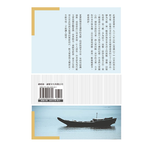 1.資深詩人夏菁創作生涯的第五本散文集,收錄自2004年以來的散文近作為一帙。