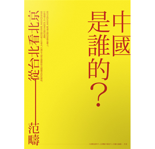 中國是誰的?答案似乎不言自明。對台灣人而言,中國似乎不是自己的。但中國有可能也是台灣的嗎?或中國必然也應然屬於台灣嗎?在本土化、民主化運動已經紮根於台灣這片土地的背景下,在中國崛起的國際格局下,以往的中國論述都無法解決當下和未來的問題,顯然台灣需要新的中國論述,那麼它是什麼呢?