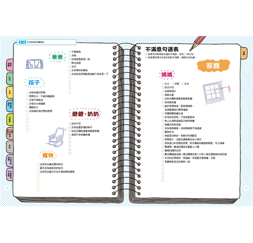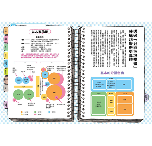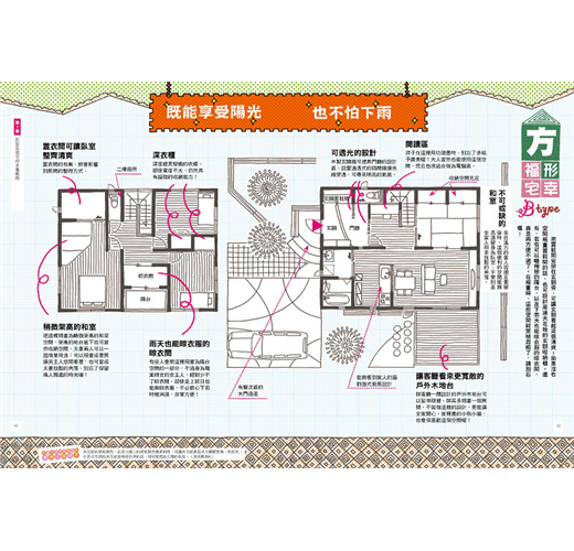 這是一本很好的居家規畫入門書,書中將生硬的建築平面圖用可愛的線條表現,還有立體圖可以對照,讓非專業的人也可以輕鬆地學習。打造房子前列出需求清單,也是很重要的事,因為如果連你自己都搞不清楚想要的生活模式,相信大部分的設計師只能依通則來幫你規畫,導致有些空間很少使用、有些空間卻不夠用。