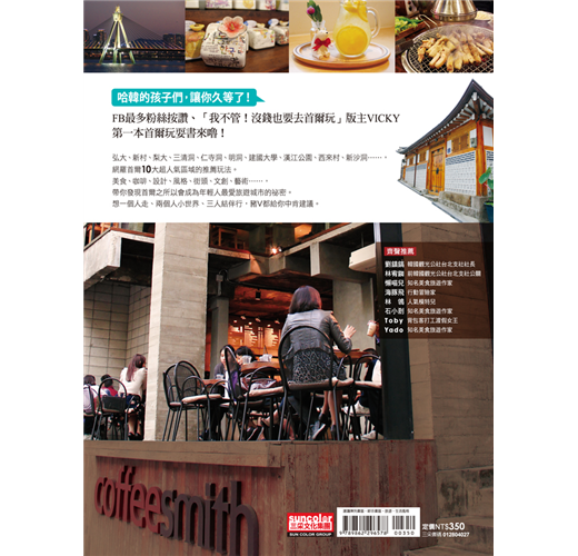 Vicky用她獨特詼諧搞笑的方式呈現,搭配她親自拍攝的美麗照片,商品價格、詳細地圖解說等等,讓這本書不但是一本超實用的旅行導覽書,更是一本看了會令人會心一笑的旅遊書,下次要去首爾自助時,一定不會忘記要帶著它。