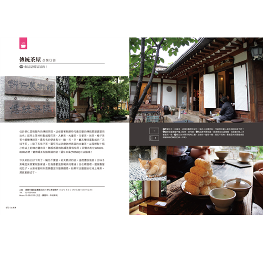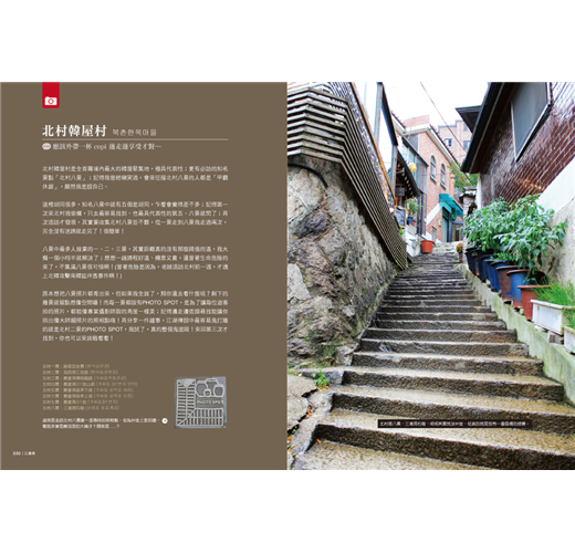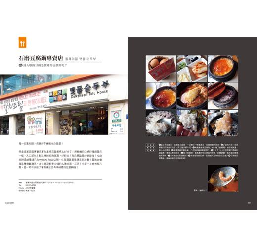 近幾年韓流風行,很多人開始到韓國自助旅行,這本書除了介紹首爾各地區的景點及美食外,還另外分類了設計商店、必買零食拌手禮、韓國生活點滴等,讓人可以從不一樣的角度來看首爾這個地方。另外當然沒有錯過許多知名韓國偶像劇的拍攝地點。