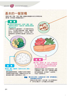 我們已在第14∼15頁中介紹過理論上的「營養均衡的飲食」,但要依照此原則,組合成每日的餐點還是很困難。因此,要在實際的飲食生活中攝取均衡營養,要以料理的組合來做考量。