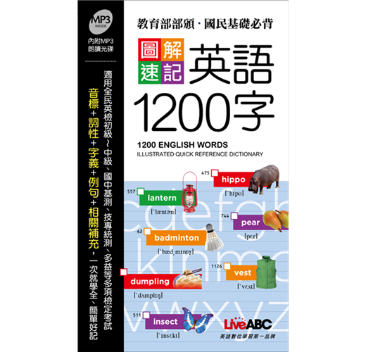 記單字的方法有很多種,搭配圖像記憶是最快速又直接的方式。《圖解速記英語1200字》不同於一般密密麻麻的單字書內容,書中有豐富的彩圖及簡易清楚的單字說明,無論是國中小學生或初學英語的成人都適用。