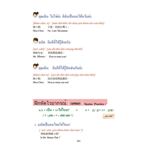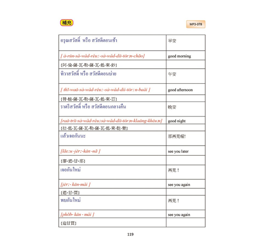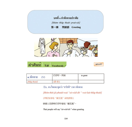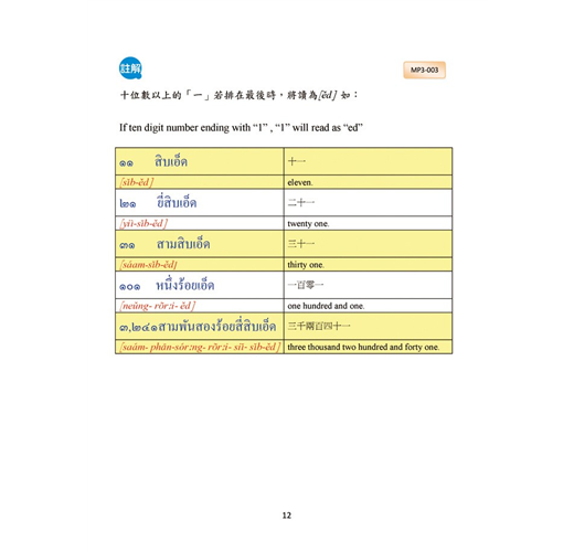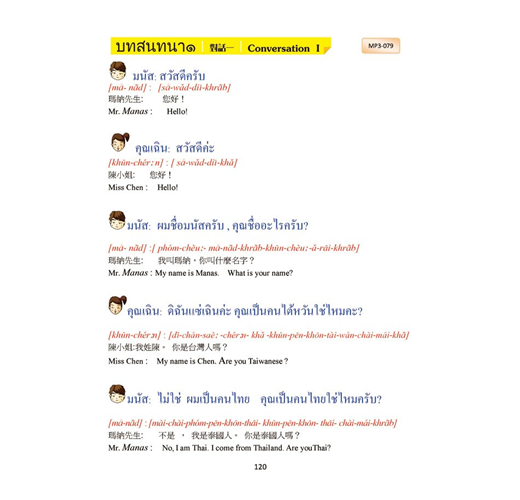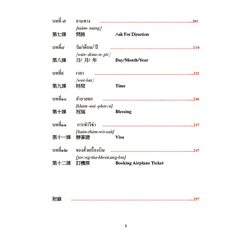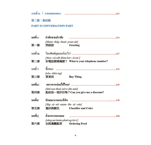 將日常生活息息相關的生活場景分門別類,由問候語開始一步一步輕鬆完成十二大類別生活對話,即可在泰國自由的生活、洽商 、旅遊喔。