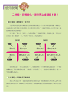 本書的主打重點,二條線學習術,即是學成日語的快速捷徑。日語中,是一個單字作「肯定」、「否定」、「過去式」、「過去否定」四種型態變化,也是基礎表達的核心重點。二條線學習術只需直橫線各一條,並將這四種變化各分置於四個角落,便能將基礎表達快速學會,並且再延伸接續其他的文法表現。