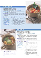 在蔬菜湯方的設計上,則以健康低熱量為主軸,輔以中醫五行,結合蔬菜五色,增強人體五臟,達到全面的照顧,並從營養學的角度說明各種蔬菜的營養成分與益處。讓你不會吃進過多的油脂和熱量,既吃得飽又吃不胖,實在是維持身材的最佳法寶。