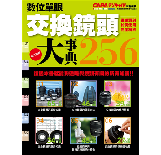 本書同屬於日本CAPA & DigiCAPA 大事典系列,以鏡頭為主題,以Q&A的方式,一問一答讓讀者可以馬上找到自己的問題,透過簡明扼要的說明以及圖解、範例相片的輔助,讓讀者可以快速的瞭解關於鏡頭的知識,對於想要選購鏡頭,或是更瞭解鏡頭使用技巧的讀者來說,是不可或缺的一本好書。