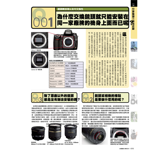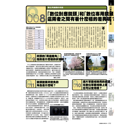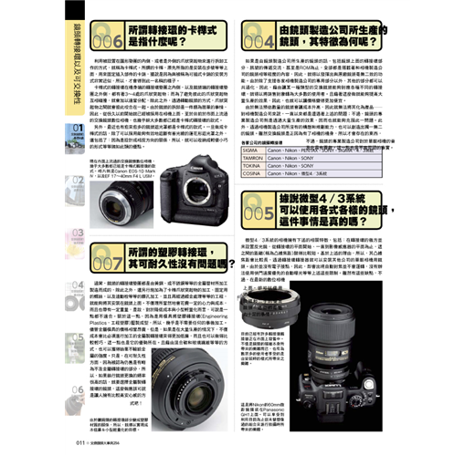 05 依據製造公司的不同,各種可交換鏡頭的特徵