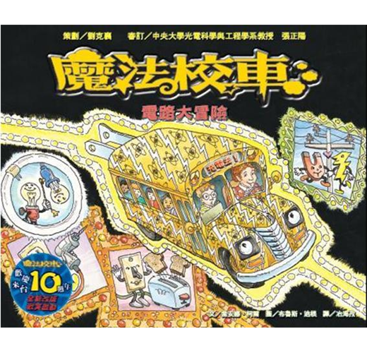 以《魔法校車──電路大冒險》為例,書中將我們日常生活裡,天天會碰到的有關電的問題,如「電是什麼?」、「電從哪裡來?」、「為什麼插頭插到插座就有電?」、「為什麼電燈會發亮?」、「為什麼電熱器會發熱?」……等疑問,以最「適量的材料」──不多不少、不深不淺,和最「適當的方法」──輕鬆有趣、好玩好懂,來編成一齣刺激又爆笑的科學冒險故事來作解答。這樣的玩法,別說孩子,連我這個中年人都忍不住被深深吸引呢!