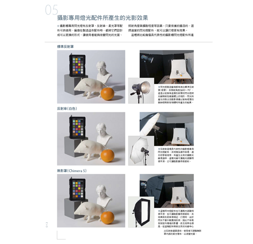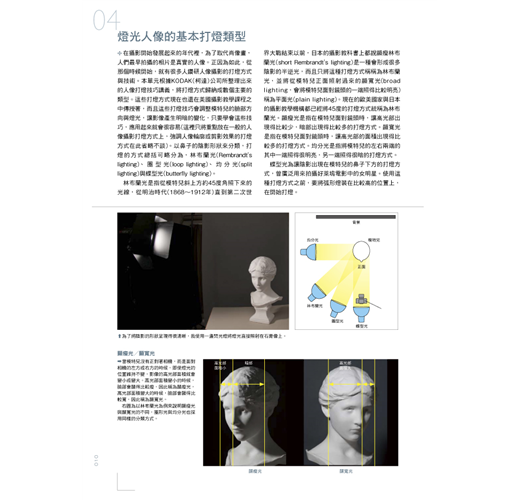 從光線的原理、打光的種類、燈具的介紹、控光設備的效果、輔助光源的運用、