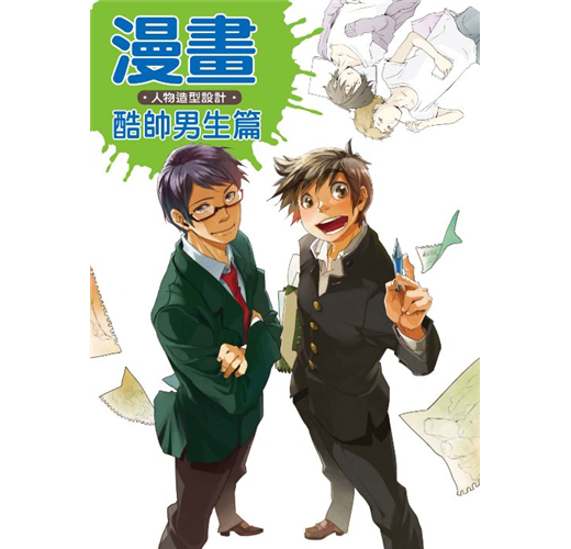 沿著水平線和正中線來畫出眼睛、鼻子等五官。眼鼻畫得尖挺一點的話,看起來就會更有男人味。