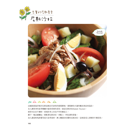 受到地中海陽光普照,盛產蔬菜、水果和海鮮等各種豐富食材的地方,就是普羅旺斯。在法國,普羅旺斯也因其料理豐沛且具簡樸美味的特色,與其他地區劃分開來。清香的橄欖油、栽培於普羅旺斯的各式香草,以及大量使用蒜和番茄的料理手法,都是普羅旺斯料理的基本特徵。同時也有不少突顯出當地豐富的自然食材和鮮明原味的料理菜色。使用對身體有益的材料、健康又廣受喜愛的普羅旺斯料理,光是想像當溫暖的陽光,就令人雀躍不已。