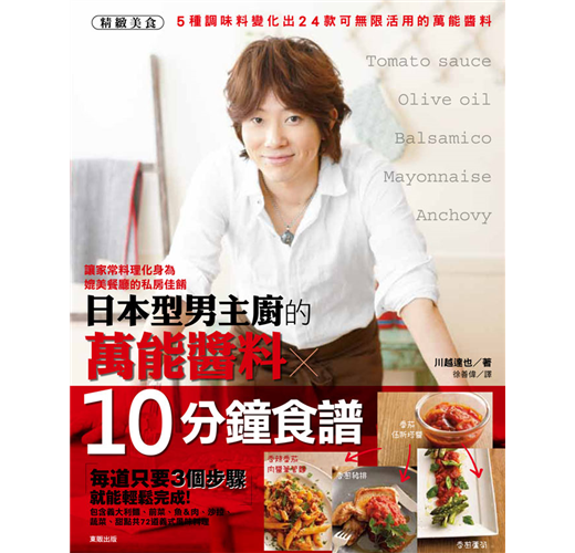 在本書中,他以水煮番茄罐頭、巴薩米克醋、橄欖油、美乃滋、鯷魚罐頭這5種調味料,變化出24款可以無限活用的萬能醬料,並設計了72道搭配醬料的時尚料理;內容包含義大利麵、前菜、魚&肉、沙拉、蔬菜、甜點,每一道的作法都超簡單,只要3個步驟就能輕鬆完成。過程雖然快速,但味道一點也不馬虎,甚至可說宛如義大利餐廳端出的美食。只要擁有這本萬能醬料食譜,無論是家常菜或宴客料理,肯定都能讓你輕鬆愉快地做出媲美名廚的佳餚。