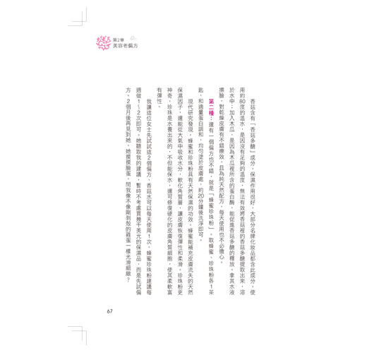 總之,「老偏方」的使用宗旨是:以對病人最少的負擔,達到最好的療效。作者將醫學道理化繁為簡,以簡單明瞭的口吻說明病因及原理,希望有更多的患者平時就能自行操作,在尚未就醫前能減緩症狀的不適。當然,每個人病況不同,還是應以就診為優先。而書中的美容方法,不妨試試,暫且拋開瓶瓶罐罐,試試朱醫師的老偏方吧!