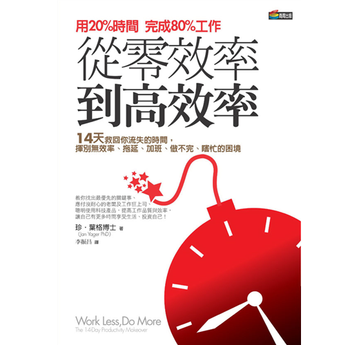 著名的時間管理專家珍.葉格(Jan Yager)博士為協助你找回虛耗的時間,提出了革命性的實踐綱領。她指出在時間管理上,只要做那 20%關鍵事,就能創造80%高效益,本書就是教你找出那關鍵事是什麼,然後專心去做,從此不再加班、勞碌命,空出更多時間享受生活、投資自己!。
