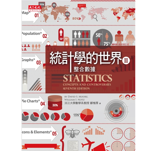 《統計學的世界》是一本通識課程的統計書,也就是說,是「非數學系」學生通識教育的一部分。這本書的內容,是從其中一位作者在給普度大學(Purdue University)人文學院一、二年級學生開課的經驗中,累積發展出來的。很高興的是其他許多教師也覺得,這本書對各領域的學生都有用,甚至包括哲學系和醫學院的學生。這本第七版,經過了大幅度的修訂,增添了幾個新單元,不過仍維持原來的宗旨:要把統計以不同的面貌呈現給大家,即不把統計當作專業的工具,而是當作受過教育的人應有的知識素養。