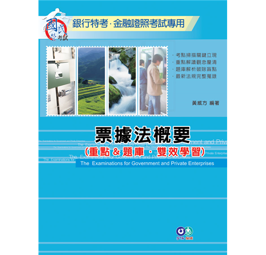 ●考點掃描關鍵立現關鍵考點快速掃描,讀前預習或考前複習皆適宜。●重點解讀觀念釐清各章內容完整解讀剖析考試重點,更將易混淆的觀念以表列方式幫助考生釐清。●題庫解析破除盲點通盤了解各章內容後,立即附上試題供考生縯練,更有詳盡的解析。●最新法規完整蒐錄蒐錄票據法相關法規,方便考生查閱。