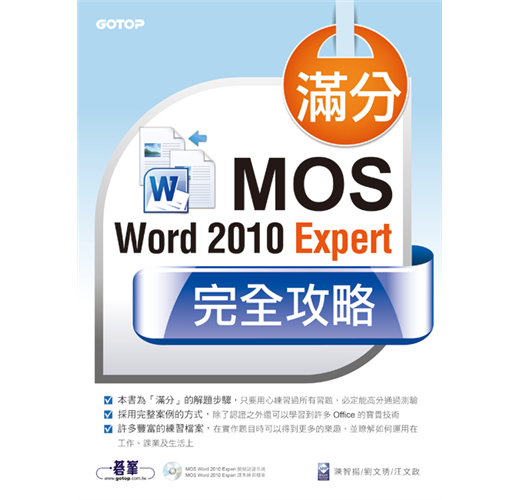 本書傳授正確的Word 2010 Expert 解題技巧,在解題的過程中也帶領讀者學習使用Word 2010 的正確觀念以及更有效率完成複雜、重覆性的工作。本書突破傳統的學習方法,透過作者所設計的延伸考題,讓您在解題的過程當中,瞭解題目的來龍去脈,進而有效率的解決問題。因此,本書不只適用於希望取得認證的考生,同時也適合企業人員進修學習。