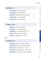 1. 收錄300個最重要的字源本書分成字首、字根、字尾三部分,分別列出英文中最基本、最重要的100個字源。在字首和字根部分,每個字源都列出5個相關單字及實用例句。為了讓讀者徹底了解單字的組成元素及基本語意,每個單字都加以拆解分析。在字尾部分,100個字尾各舉出5個相關的單字,並按照名詞、動詞、形容詞和副詞的順序編排,讓讀者一目了然,輕鬆記憶。