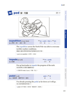 3. 插圖本書在字首和字根部分各附有30 幅插圖,目的是要幫助讀者更容易記住相關的字首和字根。在學習其他語言的過程中,我們有時不免太過強調單從字義來記單字,其實善加利用口語、聽力、視覺等其他學習方式,也可以幫助我們學單字。這裡要特別介紹的是利用「視覺」來記單字的方式。研究指出,圖像會活化大腦的視覺區,腦神經就會讓圖像及目標資訊產生連結,進而強化我們對目標資訊的記憶力。