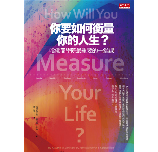 無懈可擊的一本書!無論你是多精明的企業管理者,多深思的人生經營者,本書在理論與實務間的不斷切換,對各種相鄰近概念的彼此辯證釐清,會讓你完全折服。《你要如何衡量你的人生?》以一體兩面的方式,透露給我們這樣的洞見:一是,最現實、最利益導向的事務,也必須要有智慧才能成功;二是,最感性、最私密的親人之間關係的經營,並不是只要有心就可以做好,你必須用清明理性去規劃與經營。