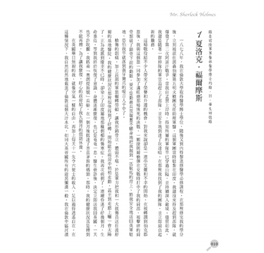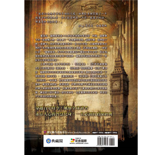 在此,我們誠摯的邀請各位讀者,與我們一同進入這位名偵探的推理世界,體驗柯南.道爾筆下的日不落帝國,並收藏這套百年不朽的傳世經典。