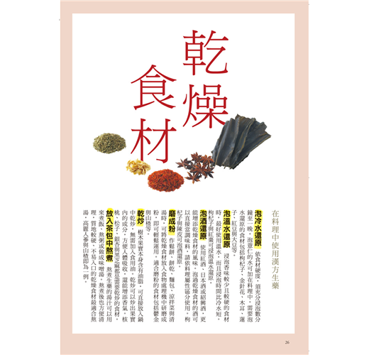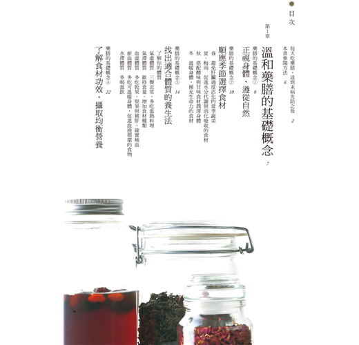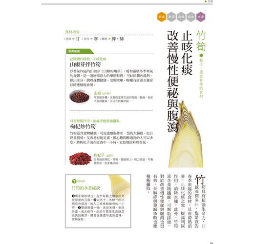 ●一目了然!依食材別分門別類,逐項說明對應症狀,並標示五味、五性、歸經以及適合體質,同時介紹一到兩種適合與其搭配的食材,並詳述藥膳的作法及功效。