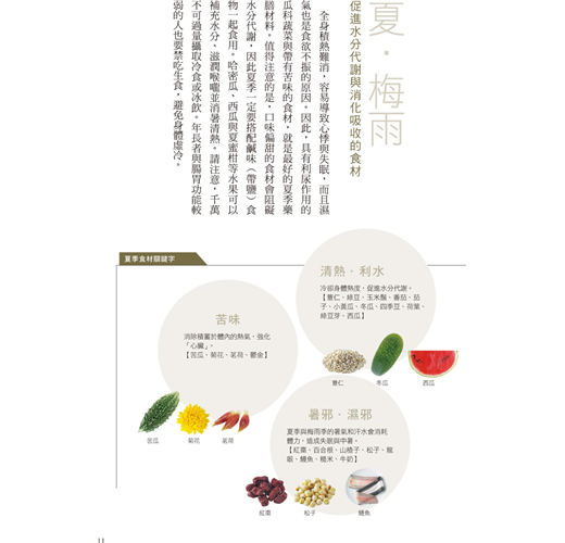毋需詳細了解漢方理論,只要謹記保持身體健康最重要的習慣,就是食用存在於自然界的食物,維持與生俱來的平衡狀態,多吃當令食材自然就會健康。身體沒有任何疾病的「未病」之人,或是想要改善身體水腫的人,只要攝取當令食材,並長期食用具有利尿作用的食物(薏仁、綠豆與瓜科植物等),就能恢復平衡狀態。